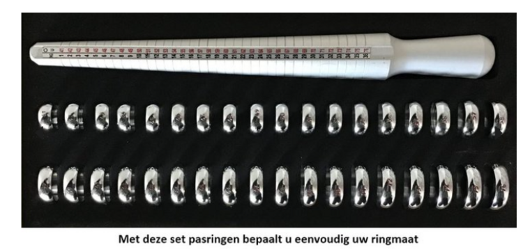 Zo kunt u in uw eigen huis de trouwringen uitproberen en eenvoudig de perfecte maat bepalen.